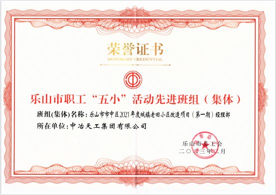 項目部把項目建設和推動產業(yè)工人隊伍建設改革、提高職工技能素質、培養(yǎng)大國工匠同部署、同推進。項目部在施工場地受限的條件下,不斷鉆研創(chuàng)新方法,應用可周轉組裝滑道轉運屋面建筑垃圾、用于石材裝卸及水平運輸?shù)难b置、一種角部防水層墊層模具,優(yōu)化施工工藝,提高施工效率。4月26日,樂山市總工會、樂山廣播電視臺聯(lián)合舉辦“中國夢·勞動美——凝心鑄魂跟黨走 團結奮斗新征程”2023年樂山市五一表彰活動,對2022年度為樂山市發(fā)展做出突出貢獻的單位、班組及個人進行表彰激勵,樂山市老舊小區(qū)改造項目斬獲樂山市職工“五小”活動先進班組(集體)榮譽稱號。