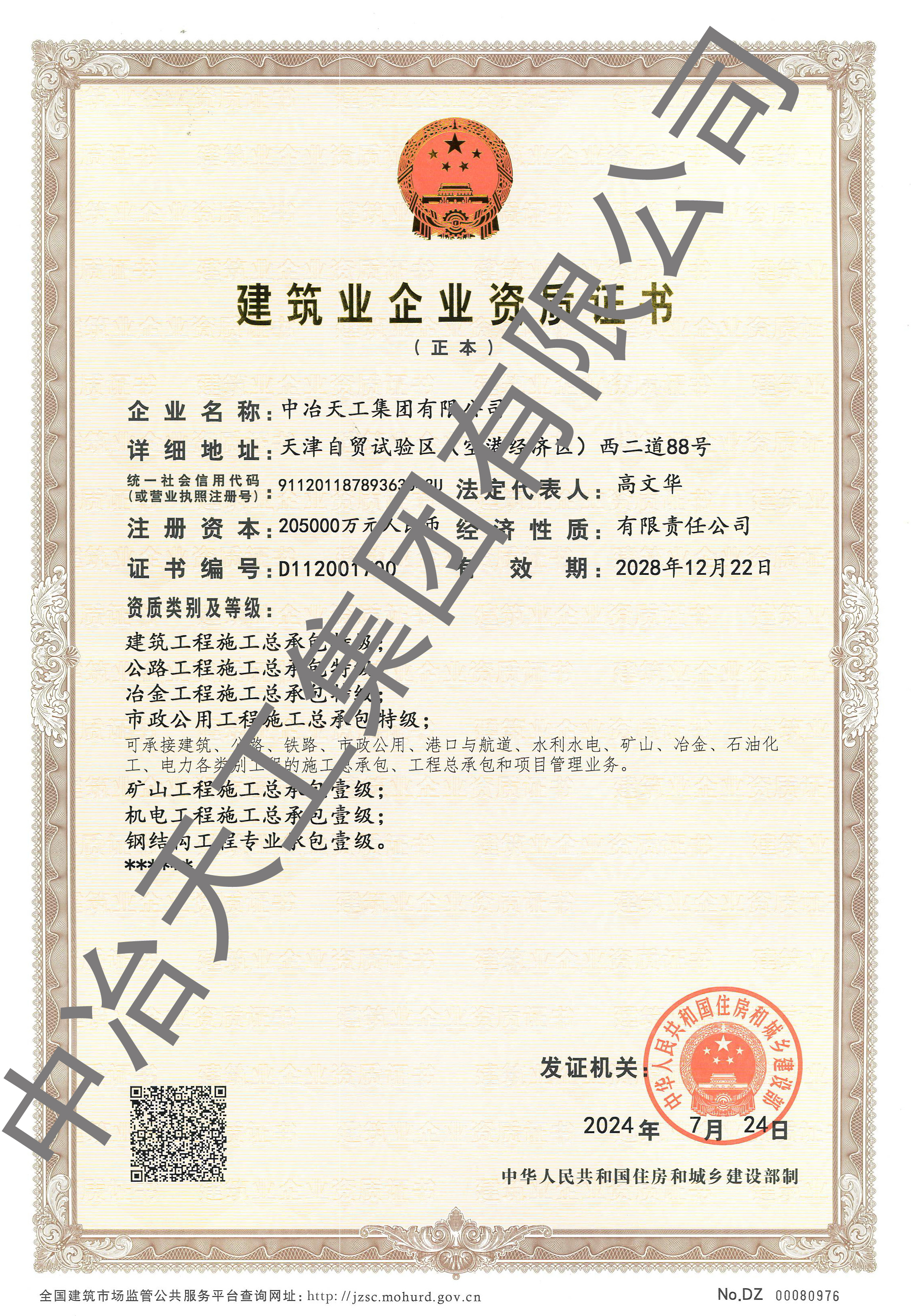 建筑业企业资质证书-国家住建部核准