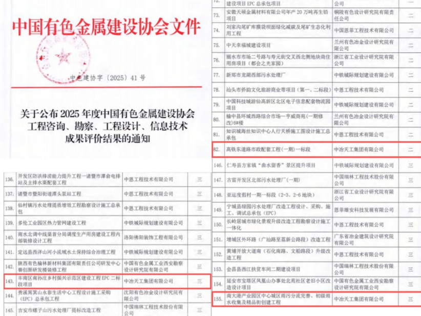 近日,中國有色金屬建設(shè)協(xié)會(huì)正式揭曉2025年度中國有色金屬建設(shè)行業(yè)優(yōu)秀工程咨詢、勘察、設(shè)計(jì)成果獎(jiǎng)評(píng)選結(jié)果。中冶天工憑借卓越的創(chuàng)新設(shè)計(jì)能力,取得一項(xiàng)二等獎(jiǎng)和兩項(xiàng)三等獎(jiǎng)的優(yōu)異成績(jī)。本次獲獎(jiǎng)充分展現(xiàn)了中冶天工在規(guī)劃設(shè)計(jì)領(lǐng)域的技術(shù)實(shí)力和綜合能力,通過精品工程的示范效應(yīng),為企業(yè)實(shí)現(xiàn)高質(zhì)量發(fā)展奠定了堅(jiān)實(shí)的業(yè)績(jī)基礎(chǔ)、打造了品牌優(yōu)勢(shì)。