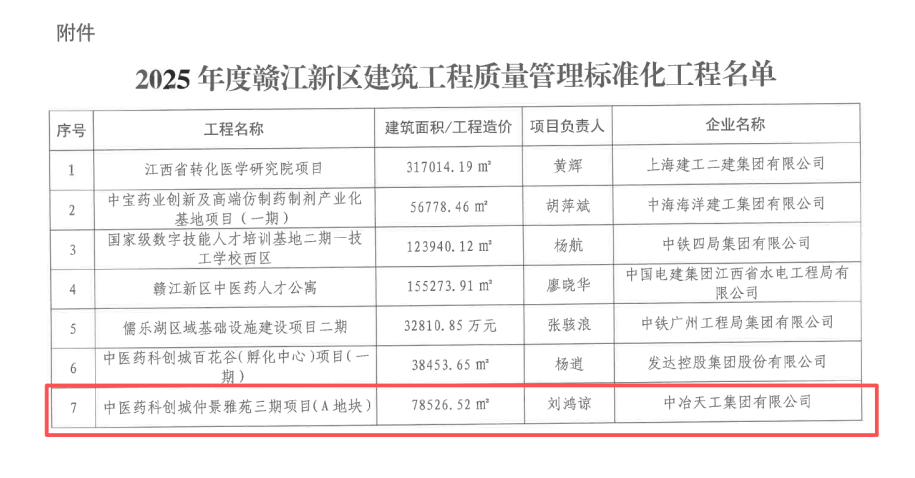 近日,在江西省南昌市贛江新區(qū)組織的區(qū)域工程質(zhì)量評(píng)優(yōu)活動(dòng)中,華南公司承建的中醫(yī)藥科創(chuàng)城項(xiàng)目憑借過硬的工程質(zhì)量和精細(xì)化的管理水平,榮獲“贛江新區(qū)建筑工程質(zhì)量管理標(biāo)準(zhǔn)化工程”獎(jiǎng)項(xiàng)。